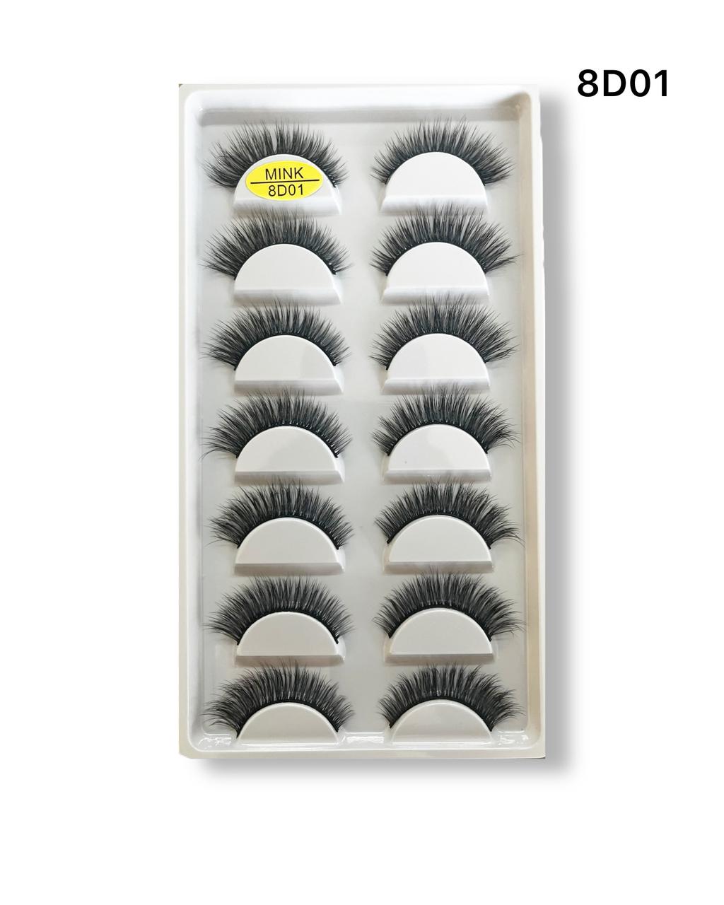 Caixa Com 7 pares de Cílios Postiços 8D-01 - Fix Make
