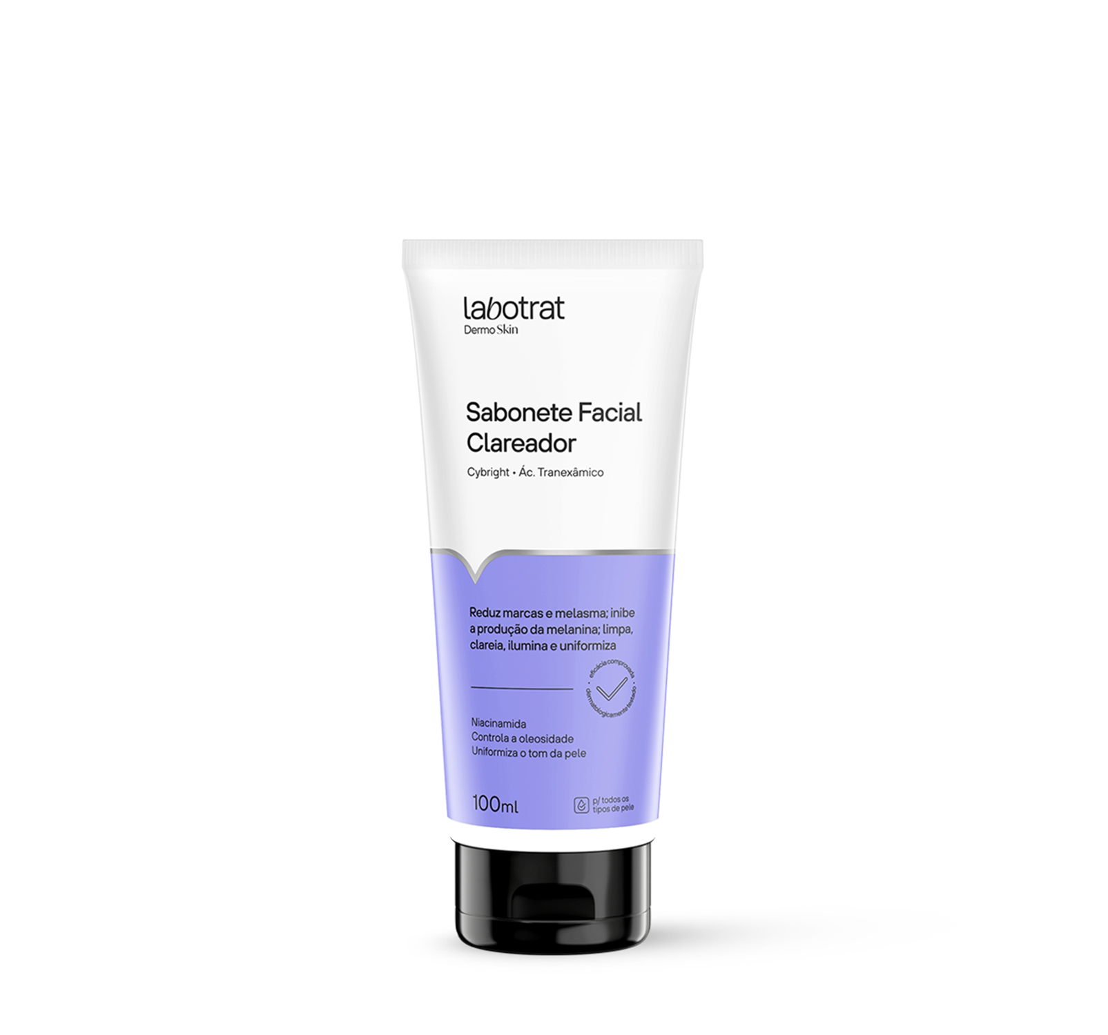 Formulado com Cybright e Ácido Tranexâmico o Sabonete Facial Clareador limpa de forma eficaz sem ressecar, ilumina e clareia progressivamente a pele a cada dia de uso.